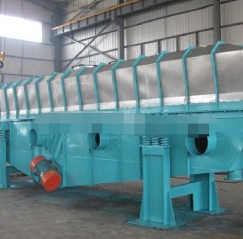 物料自进料进口进入机内,在振动力作用下,物料沿水平面流化床抛掷,向前连续运动,热风向上穿过流化床同湿物料换热后,湿空气经旋风分离器除尘后由排风1:3排出.干燥物料由排料进口排出。